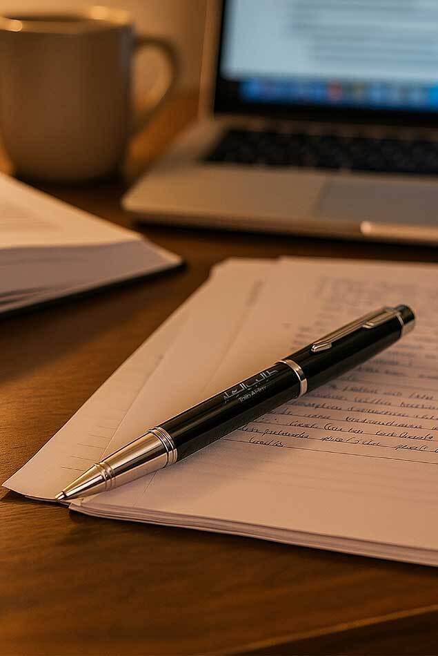Our Qalam arrives in our carefully crafted bespoke gift box. It sits lightly in your hand and glides beautifully across the page. Wherever you store it - in your shirt pocket, the inside of your blazer jacket, or pencil case, it will imbue your writing with the quality of its craftsmanship.